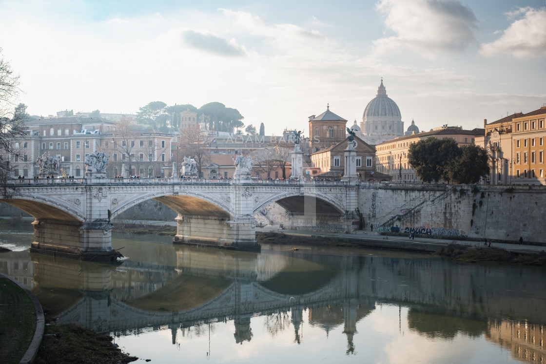 As the pope laid in rest I took a photograph across the river towards Saint Peters and the Vatican City.